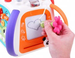 Magnetoscopul integrat cu stylus în formă de floare stimulează primele încercări creative. Panourile glisante creează iluzia mișcării și un joc vizual distractiv.