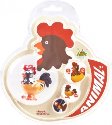 - Lumină + sunet – la apăsare luminează și cântă ca un cocoș.