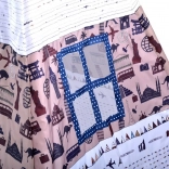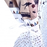 Cortul este proiectat cu o combinație de modele albe, albastre și maro, care îi conferă un aspect jucăuș și atrăgător.
