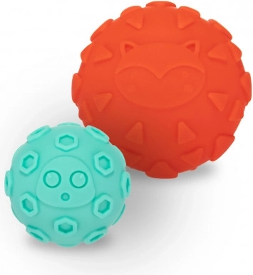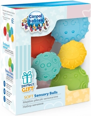 Mingile senzoriale fine sunt destinate în primul rând pentru joacă și explorare în primele luni de viață ale bebelușilor. Aceste mingi îi ajută pe părinți să sprijine dezvoltarea bebelușilor într-o etapă foarte timpurie. Formele și materialele variate oferă stimuli senzoriali diferiți. Permit exersarea prinderii și stimulează simțul tactil. Culorile proaspete și vesele încurajează micuții la activitate și joacă. Mingiile pot fi folosite și pentru un masaj delicat. Setul conține 6 mingi de culori diferite, ambalate într-o cutie cadou atractivă și nu conțin BPA. Destinate jocului și exersării prinderii. Ajută la antrenarea apucării și la dezvoltarea abilităților motorii — formele și texturile diferite creează efecte senzoriale distincte. Culori vesele și vibrante — îi încurajează pe copii la joacă activă. Mingiile sunt un accesoriu atrăgător pentru masajul delicat al bebelușului. Instrucțiuni de utilizare: Mențineți-le curate, spălați cu peria sub jet de apă folosind un detergent delicat, clătiți bine. Înainte de prima utilizare clătiți cu apă fierbinte. Nu fierbeți, nu sterilizați. Atenție! Important pentru siguranța și sănătatea copilului dumneavoastră! Verificați starea produsului înainte de fiecare utilizare. La primele semne de uzură sau deteriorare nu mai folosiți produsul – înlocuiți-l cu unul nou. Produsul corespunde cerințelor: Directiva Parlamentului European și a Consiliului 2009/48/CE privind siguranța jucăriilor. EN 71 - 1 Siguranța jucăriilor - Partea 1: Proprietăți mecanice și fizice. EN 71 - 2 Siguranța jucăriilor - Partea 2: Inflamabilitate. EN 71 - 3 Siguranța jucăriilor - Partea 3: Migrarea anumitor elemente.