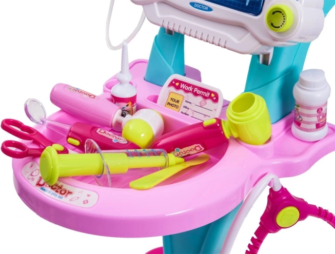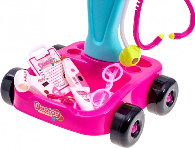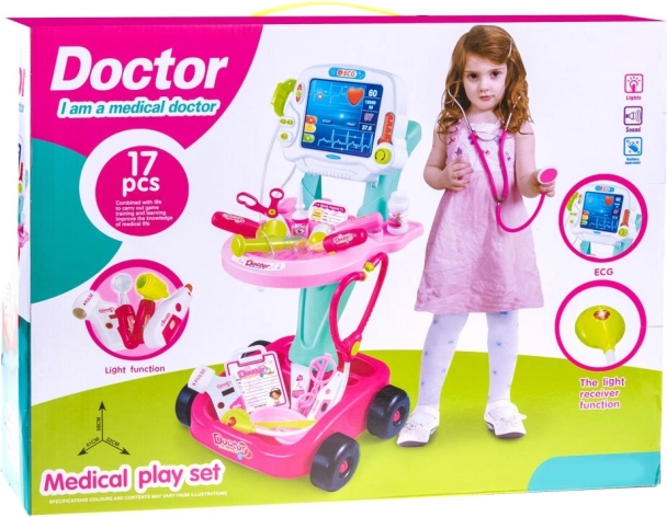 Căruciorul medical pentru copii, cu un set bogat de instrumente pentru jocul de-a doctorul, susține creativitatea, învățarea și abilitățile sociale. Include un panou cu efecte de lumină și sunet, stetoscop, termometru, tensiometru și alte accesorii. Datorită roților, căruciorul este mobil și ușor de mutat.