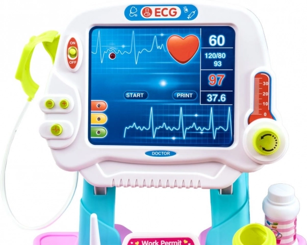 Panoul interactiv cu efecte (lumini și sunete) simulează monitorizarea pacientului, în timp ce elementele funcționale, precum „inimioara clipitoare” de pe stetoscop și valorile iluminate pe termometru și tensiometru, sporesc imersiunea în joc. Căruciorul cu roți permite transportul facil al întregului set.