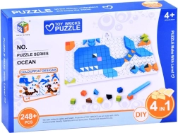 Setul conține 248+ cubulețe colorate pentru a crea mozaicuri variate. Copiii pot realiza modele după șabloane (de ex. animăluțe sau scene oceanice) sau pot inventa propriile imagini.
