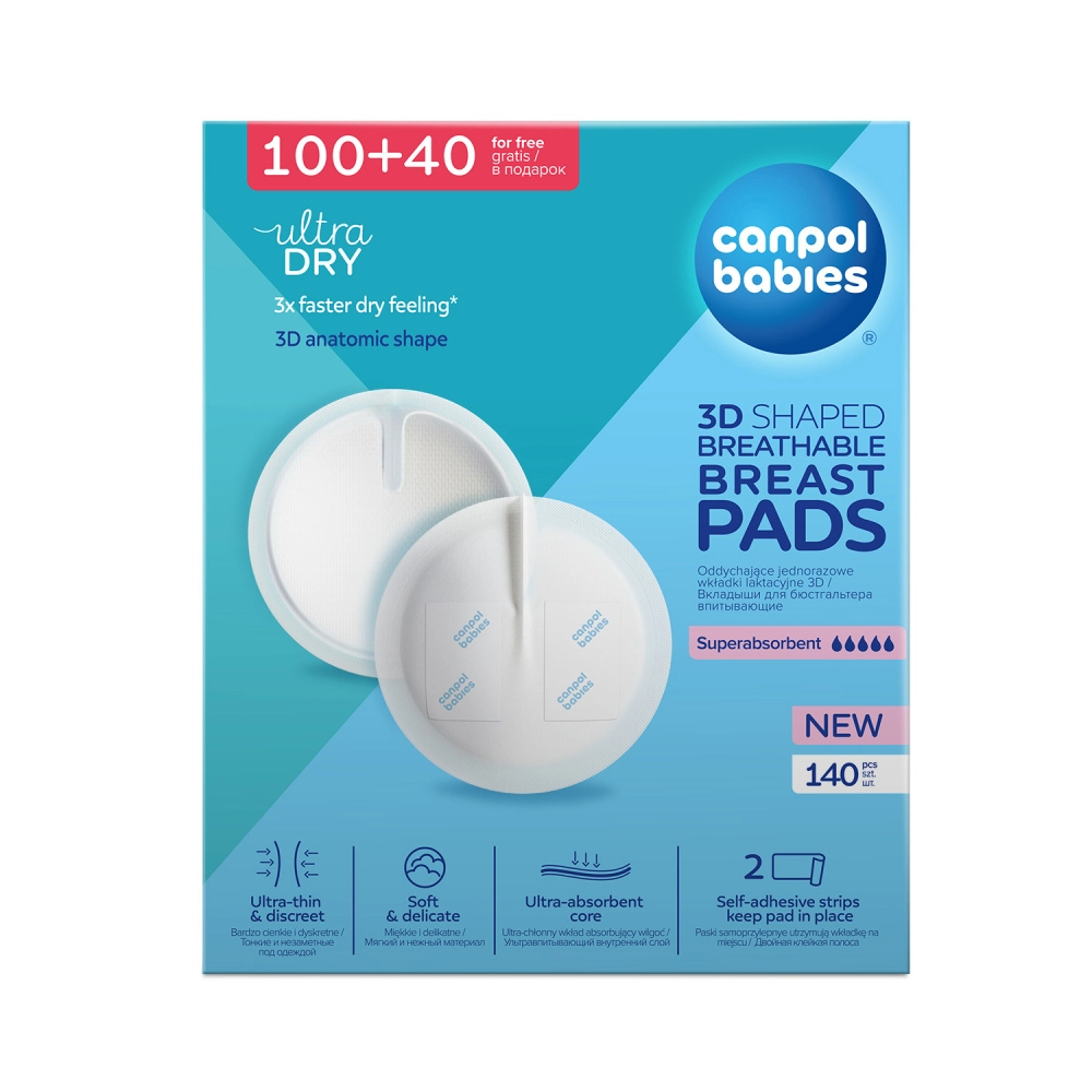 Tampoanele pentru sâni CANPOL BABIES Ultra Dry 3D sunt concepute pentru protecție sigură în caz de scurgeri de lapte. Stratului absorbant moale absoarbe rapid lichidul și închide umezeala în interior, în timp ce stratul exterior impermeabil protejează lenjeria. Cu o grosime de aproximativ 1,3 mm, sunt foarte subțiri și discrete, dar în același timp performante și confortabile pentru purtare zilnică.