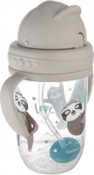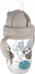 Cană practică pentru copii CANPOL BABIES cu pai din silicon anti-vărsare cu greutate, care permite băutul din orice unghi și până la ultima picătură. De la 6 luni, cu mânere late pentru mâini micuțe, capac 100% etanș și material fără BPA – ideală acasă și în călătorii.
