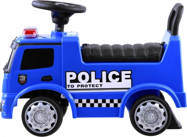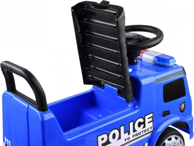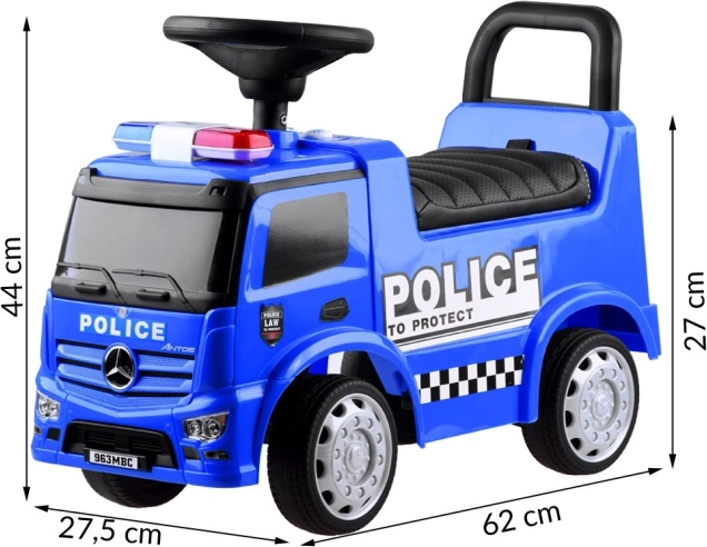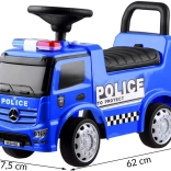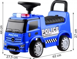 Vehiculul Mercedes Poliție este o alegere excelentă pentru copiii mici. Este echipat cu un claxon sonor și un girofar luminos, care pot fi activate prin apăsarea butoanelor. Scaunul confortabil cu spătar asigură o călătorie sigură și confortabilă, iar datorită blocării speciale, vehiculul nu se va răsturna înapoi.