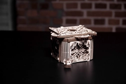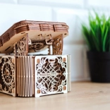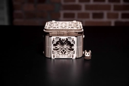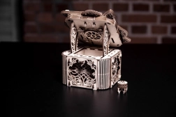 Această cutie mecanică din lemn este nu doar un element decorativ deosebit, ci și un puzzle provocator. O vei îndrăgi pentru designul său unic și mecanismele aparent complicate, pe care trebuie să le descifrezi pentru a o deschide.