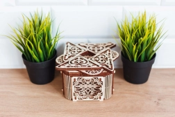 Această cutie este o capodoperă a artei lemnului, cu tăieturi laser care aduc în casa ta eleganță și originalitate.