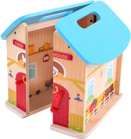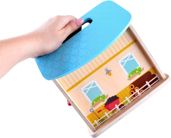 Fermă de lemn pentru copii poate fi începutul unei mari aventuri. Imaginația și creativitatea copiilor nu au limite. După ce jocul s-a terminat, casa poate fi închisă, facilitând depozitarea, transportul și asigurând siguranța figurinelor din interior. Această jucărie susține petrecerea creativă a timpului, dezvoltând imaginația și ajutând la dezvoltarea multor alte abilități.