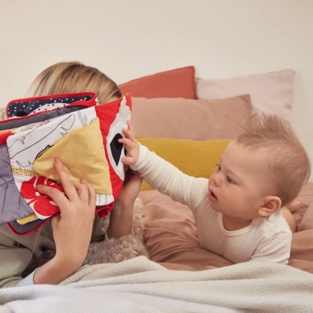 Copiii pot manipula cărticica, ceea ce stimulează interacțiunea și susține jocul activ împreună cu părinții.