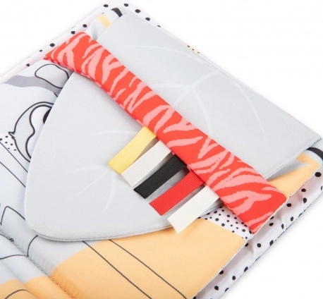 Cărțica este recomandată de specialiști pentru capacitatea sa de a dezvolta percepția senzorială și coordonarea mână-ochi. În plus, este realizată din materiale sigure, fără bisfenol A.