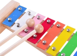 Xilofonul cu clape metalice curcubeu permite copiilor să exploreze melodii și să dezvolte auzul muzical. Este ideal pentru învățarea principiilor muzicale de bază.
