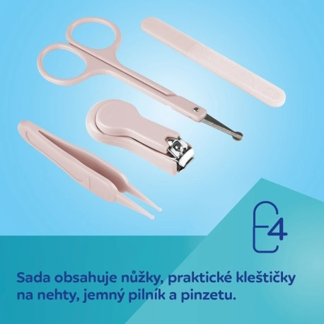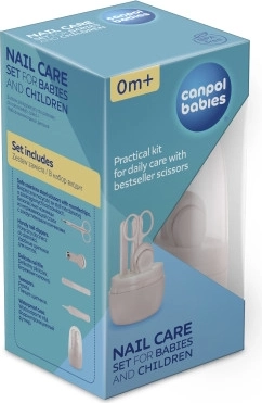 Set complet pentru îngrijirea unghiilor bebelușilor, ambalat într-o husă practică, impermeabilă, care permite depozitarea și transportul igienic. Setul pentru unghii pentru bebeluși este format din 4 elemente – foarfece, clește practic pentru unghii, pilă fină și pensetă. Pentru tăierea eficientă și sigură a unghiilor copilului ajută cele mai vândute foarfece din oțel inoxidabil, cu vârf rotunjit. Capetele rotunjite ale foarfecelor previn rănirea. Pila fină de unghii ajută la îndepărtarea denivelărilor și protejează copilul împotriva zgârieturilor. Setul Canpol babies de îngrijire a unghiilor pentru bebeluși și copii este disponibil în două variante de culoare. Este sigur pentru copii încă din primele zile de viață. Ideal pentru copii din primele momente ale vieții. Foarfeci bestseller – din oțel inoxidabil, cu vârfuri rotunjite. Foarfecele sunt ideale pentru tăierea eficientă și sigură a unghiilor bebelușului. Clește de unghii practic, pilă de unghii fină, pensetă. Husă impermeabilă – depozitare și transport igienic. Disponibil în 2 variante de culoare. Instrucțiuni de utilizare: Setul conține foarfece, clește practic pentru unghii, pilă fină și pensetă. Disponibil în două variante de culoare. Pentru a minimiza riscul mișcărilor neașteptate ale copilului, se recomandă tăierea unghiilor când copilul doarme. Setul nu este potrivit pentru mașina de spălat vase. Nu fierbeți; pentru dezinfectare folosiți un dezinfectant adecvat și clătiți cu apă. Avertisment! Important pentru sănătatea și siguranța copilului dumneavoastră! Mențineți produsul curat. Înainte de prima și fiecare utilizare ulterioară, dezinfectați produsul cu un dezinfectant pe bază de alcool. Se recomandă utilizarea produsului când copilul doarme, pentru a preveni mișcările bruște. Folosiți întotdeauna acest produs sub supravegherea unui adult. Verificați produsul înainte de fiecare utilizare. În caz de deteriorare sau prime semne de uzură, aruncați-l. Avertizare! Acest produs nu este o jucărie. A se păstra la îndemâna copiilor. Avertizare. Produsul conține piese cu muchii ascuțite. Manifestați o atenție deosebită în timpul îngrijirii bebelușului. Cleștele corespunde cerințelor: Directivei Parlamentului European și a Consiliului 2001/95/CE privind siguranța generală a produselor.