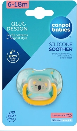 Suzeta stilată Canpol babies Exotic Animals cu motiv koala pentru copii 6–18 luni oferă liniște și confort. Are tetină simetrică din silicon fără gust și miros, scut ventilat delicat cu pielea, mâner practic pentru prindere ușoară și miez luminos pentru găsire facilă pe întuneric. Fără BPA, rezistentă și nedistorsionabilă.