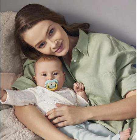 Elementul luminos practic ajută la găsirea rapidă a suzetei chiar și în întuneric total, fără a trezi bebelușul.