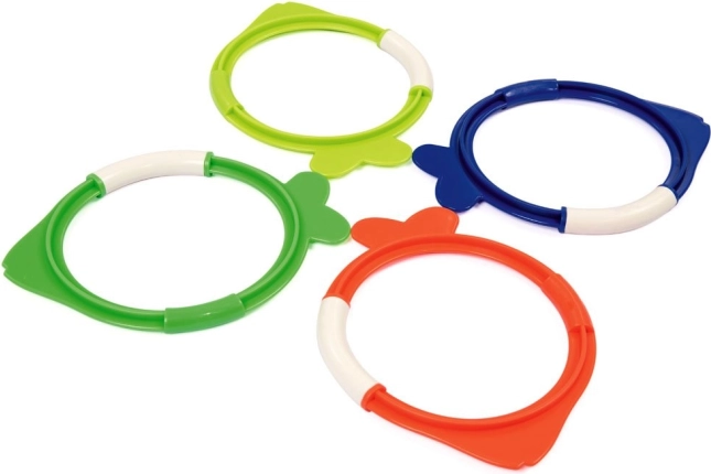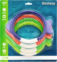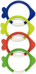 Setul de inele de scufundare în formă de pești este un accesoriu distractiv și educativ pentru piscină. După aruncare, peștișorii se scufundă lent, astfel încât copiii pot exersa orientarea sub apă, ținerea respirației și scufundarea în siguranță. Culorile vii ușurează căutarea și cresc motivația pentru joacă.