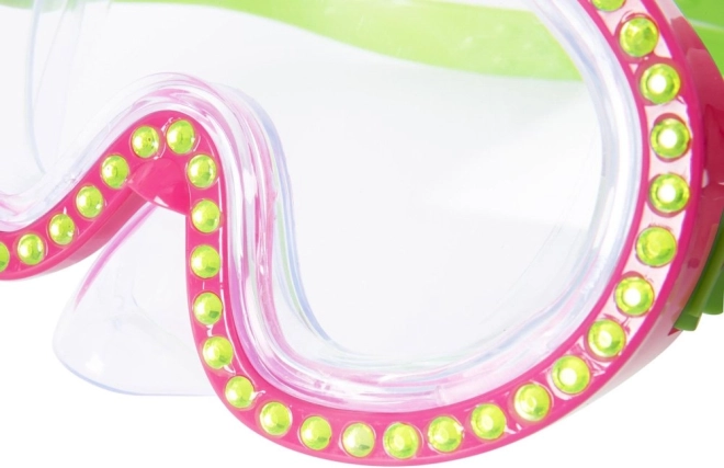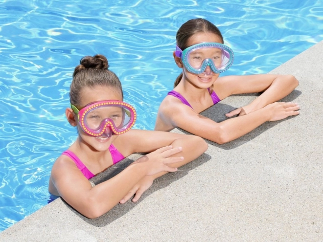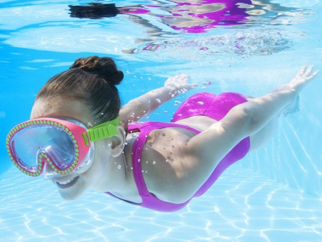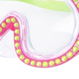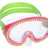 Masca de înot este decorată cu cristale care oferă un aspect unic și elegant, în timp ce copiii se bucură de înot.