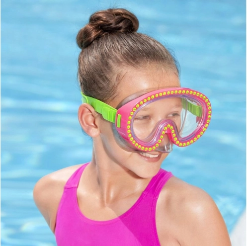 Mască de înot Bestway este ideală pentru copii de la șapte ani, proiectată cu accent pe confort și stil. Datorită reglajului, se adaptează ușor și garantează o fixare perfectă pe capul copilului.