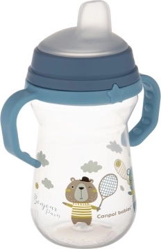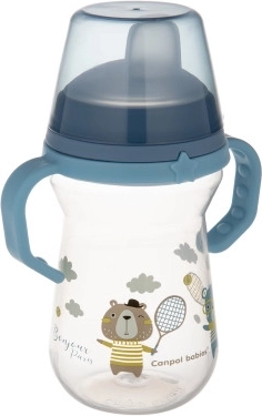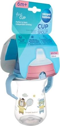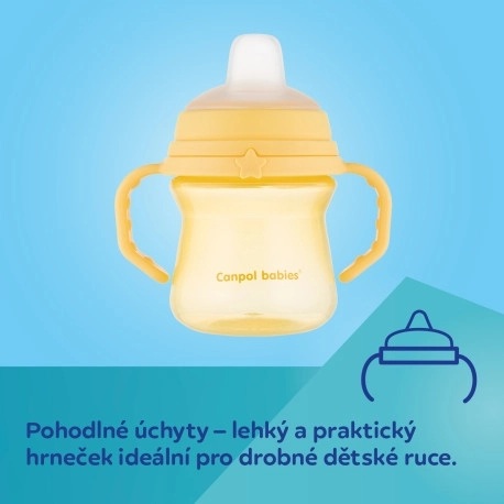 Cană anti-vărsare de la Canpol babies ajută copilul să treacă natural și ușor de la biberon la cană. Ciocul este realizat din silicon moale, sigur pentru gingiile sensibile ale copilului. Cana este foarte ușoară, cu mânere confortabile care facilitează ținerea chiar și de către mânuțele mici.