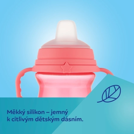 Această cană amintește de băutul din biberon, ceea ce facilitează tranziția rapidă pentru copil.