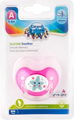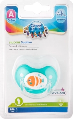 Suzeta LOVE&SEA, fabricată din silicon de înaltă calitate, fără gust și miros. Are scut luminos. Echipată cu tetină modelată ortodontic. Datorită orificiilor din scut, suzeta nu irită gura sensibilă a copilului. Lumina difuză din discul întunecat facilitează găsirea pe timp de noapte. Fără BPA. Disponibilă în mai multe culori și 3 mărimi: 22/506 0–6 luni, 22/507 6–18 luni, 22/508 de la 18 luni. Scutul special, ventilat, previne iritarea pielii din jurul gurii delicate a copilului. Tetița este realizată din silicon transparent, fără gust și miros. Mâner confortabil – facilitează oferirea suzetei și permite o atașare ușoară la panglică sau lanț pentru suzetă. Design colorat și original. Proiectată pentru copii cu vârsta 0–6 luni. Fabricată din material sigur, fără bisfenol A. Instrucțiuni de utilizare: Înainte de prima utilizare, din motive de igienă, sterilizați suzeta în apă clocotită timp de aproximativ 5 minute. După răcire, stoarceți apa rămasă din suzetă. Înainte de fiecare utilizare, spălați suzeta temeinic în apă caldă. Nu folosiți agenți antibacterieni sau produse chimice de curățare. Utilizarea excesivă a detergenților poate provoca deteriorarea pieselor din plastic. Nu înmuiați niciodată suzeta în substanțe dulci sau medicamente – expuneți copilul la riscul apariției cariilor și defectelor smalțului dentar. Folosiți suzeta maximum 1–2 luni, apoi, din motive de igienă și siguranță, înlocuiți-o cu una nouă. Dacă suzeta intră în gura copilului, NU INTRAȚI ÎN PANICĂ – suzeta este concepută astfel încât copilul să nu o poată înghiți și o puteți scoate în siguranță din gură în astfel de cazuri. Scoateți suzeta cât mai atent posibil. Păstrați suzeta într-o carcasă curată, uscată și închisă. Recomandăm să nu se utilizeze suzete la copiii mai mari de 3 ani. Important! Pentru siguranța și sănătatea copilului dumneavoastră! Verificați suzeta înainte de fiecare utilizare. Verificați calitatea tetinei prin întindere temeinică în toate direcțiile. La primele semne de deteriorare, aruncați suzeta imediat și nu o mai folosiți. Folosiți numai cleme și lanțuri pentru suzetă care corespund cerințelor standardului EN12586. Nu atașați niciodată suzeta la diverse șnururi, șireturi sau panglici de la haine. Copilul se poate sufoca. Nu lăsați suzeta în lumina directă a soarelui, în apropierea unei surse de căldură sau în soluții de dezinfectare mai mult decât este recomandat – puteți provoca slăbirea tetinei suzetei. Păstrați capacul îndepărtat în afara razei de acțiune a copilului – pentru a preveni posibila sufocare. Suzeta din silicon îndeplinește cerințele: Directiva Parlamentului European și a Consiliului 2001/95/CE privind siguranța generală a produselor; EN 1400 - 1 Produse pentru îngrijirea copilului - Suzete pentru sugari și copii mici - Partea 1: Cerințe generale de siguranță și informații despre produs; EN 1400 – 2 Produse pentru îngrijirea copilului - Suzete pentru sugari și copii mici - Partea 2: Cerințe mecanice și încercări; EN 1400 - 3 Produse pentru îngrijirea copilului - Suzete pentru sugari și copii mici - Partea 3: Cerințe chimice și încercări