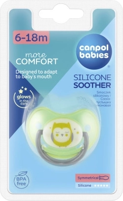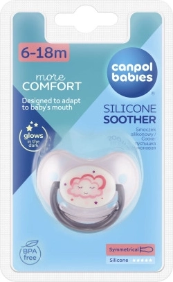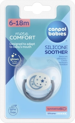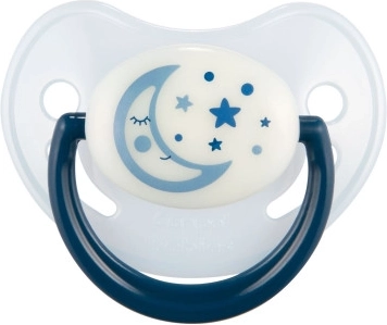 Suzeta NIGHT DREAMS, realizată din silicon de înaltă calitate, fără miros. Echipată cu tetină cu formă ortodontică. Datorită orificiilor din scut, suzeta nu irită gurițele sensibile ale copiilor. Discul care luminează discret în întuneric facilitează găsirea pe timp de noapte. Fără BPA. Disponibilă în mai multe culori. Proiectată pentru copii cu vârsta între 6-18 luni. Suzeta este disponibilă în 3 mărimi: 22/500 0–6 luni, 22/501 6–18 luni, 22/502 de la 18 luni. Ambalajul conține 1 bucată. Are un centru luminos în întuneric, care ajută la găsirea suzetei. Suzeta este bine ventilată datorită orificiilor speciale de aerisire din scut. Suzeta este fabricată din silicon de cea mai înaltă calitate, fără gust și fără miros. Mâner comod - facilitează oferirea suzetei și permite prinderea ușoară de o panglică sau un lanț pentru suzetă. Ideală pentru copii de la 6 la 18 luni. Fabricată din material sigur, fără bisfenol A. Nu utilizați în mașina de spălat vase sau în cuptorul cu microunde. Poate fi dezinfectată și fiartă. Instrucțiuni de utilizare: Înainte de prima utilizare, din motive de igienă, sterilizați suzeta în apă clocotită timp de aproximativ 5 minute. După răcire, stoarceți apa rămasă din tetină. Înainte de fiecare utilizare, spălați suzeta temeinic în apă caldă. Nu folosiți agenți antibacterieni sau detergenți chimici. Utilizarea excesivă a agenților de curățare poate deteriora piesele din plastic. Nu înmuiați niciodată suzeta în substanțe dulci sau medicamente – expuneți copilul riscului apariției cariei smalțului. Folosiți suzeta maximum 1-2 luni, apoi înlocuiți-o din motive de igienă și siguranță. Dacă suzeta intră în gura copilului, NU INTRAȚI ÎN PANICĂ – suzeta este concepută astfel încât copilul să nu o poată înghiți și o puteți scoate în siguranță din gură în astfel de cazuri. Scoateți suzeta cât mai atent posibil. Păstrați suzeta într-o cutie curată, uscată și închisă. Recomandăm să nu se utilizeze suzete la copiii mai mari de 3 ani. Important! Pentru siguranța și sănătatea copilului dumneavoastră! Verificați suzeta înainte de fiecare oferire copilului. Testați tetina prin întindere atentă în toate direcțiile. La primele semne de deteriorare, aruncați suzeta imediat și nu o mai folosiți. Folosiți doar clame și lanțuri pentru suzetă care îndeplinesc cerințele standardului EN12586. Nu atașați niciodată suzeta de diferite șnururi, șireturi sau panglici de la haine. Copilul se poate sufoca. Nu lăsați suzeta în lumina directă a soarelui, în apropierea unei surse de căldură sau în dezinfectanți mai mult decât este recomandat – puteți slăbi tetina suzetei. Păstrați capacul scos departe de copil – preveniți posibila sufocare. Suzeta din silicon îndeplinește cerințele: Directiva Parlamentului European și a Consiliului 2001/95/CE privind siguranța generală a produselor. EN 1400 - 1 Produse pentru îngrijirea copilului - Suzete pentru sugari și copii mici - Partea 1: Cerințe generale de siguranță și informații despre produs. EN 1400 – 2 Produse pentru îngrijirea copilului - Suzete pentru sugari și copii mici - Partea 2: Cerințe și teste mecanice. EN 1400 - 3 Produse pentru îngrijirea copilului - Suzete pentru sugari și copii mici - Partea 3: Cerințe și teste chimice.