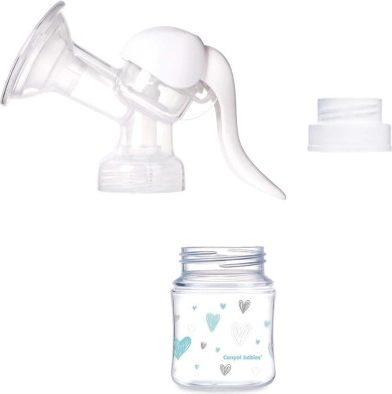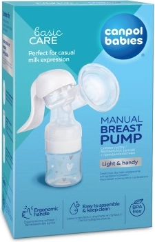 Pompă manuală Basic, ușor de utilizat și de întreținut. Numărul redus de piese facilitează curățarea. Mânerul special conturat face mulsul foarte confortabil și nu necesită forță mare. Baza practică asigură stabilitatea pompei. Pâlnia modelată copiază perfect forma sânului. Inserția de masaj din silicon masează delicat sânul și, prin extragerea surplusului de lapte, ajută la prevenirea inflamațiilor. Este compatibilă cu alte accesorii pentru depozitarea laptelui – puteți mulge direct în biberoane clasice sau cu gât larg Canpol babies. Pompa manuală pentru sân este, datorită adaptorului inclus, potrivită pentru toate biberoanele Canpol babies cu gât larg și îngust. Setul conține: corpul pompei pentru sân cu pâlnie și capac, biberon cu gât larg 120 ml cu tetină 3 m+, adaptor pentru biberoane. Suport eficient pentru mulsul ocazional. Mâner ergonomic – permite o prindere confortabilă în timpul mulsului. Forma conturată a pâlniei asigură o etanșare bună pe sân. Pâlnia din silicon asigură muls delicat și eficient. Foarte ușor de utilizat – asamblare și curățare simple. Ușoară și practică – ideală acasă și în călătorii. Compatibilă cu toate biberoanele pentru copii Canpol babies. Fabricată din material sigur, fără bisfenol A. Când să folosiți pompa? Dacă este posibil, așteptați 2–4 săptămâni după naștere, până se stabilizează lactația. Excepții de la regula de mai sus: Dacă aveți prea mult lapte, sânii sunt plini și tari. Extragerea surplusului înainte sau în timpul alăptării eliberează sânul supraîncărcat și facilitează atașarea copilului. Mamelonul este retras în sân din cauza unei pauze lungi între alăptări. Aveți mameloane retractate, plate sau rănite (mulsul ajută la formarea mameloanelor retractate sau plate). Dacă între mese simțiți o umplere bruscă a sânului și nu doriți să treziți copilul. Copilul este bolnav și nu poate suge. În caz de producție redusă de lapte – utilizarea pompei stimulează activitatea glandelor mamare. Dacă vă întoarceți la serviciu și nu doriți să întrerupeți alăptarea – este necesară simularea procesului natural de alăptare prin utilizarea pompei. Cât de des să mulgeți cu pompa? Dacă mama nu poate alăpta, recomandăm mulsul de 8 ori pe zi. Aceasta menține lactația la nivelul potrivit. La început puteți avea dificultăți în a extrage cantități mai mari de lapte, dar după câteva zile volumul va crește. În lactație stabilizată, cantitatea extrasă o dată este între 30–60 ml, de aceea pentru o porție va fi nevoie de mai multe sesiuni. Cum se curăță și se sterilizează pompa? Înainte de prima și de fiecare utilizare, demontați pompa în piese. Spălați bine toate piesele pompei și biberonul/recipientul în apă caldă cu detergent blând, clătiți bine și sterilizați conform instrucțiunilor de mai jos. Înainte de prima utilizare, din motive de igienă, sterilizați toate piesele pompei și biberonul/recipientul timp de 5 minute în apă clocotită. Înaintea fiecărei utilizări ulterioare, din motive de igienă, sterilizați toate piesele pompei și biberonul/recipientul prin opărire cu apă clocotită sau într-un sterilizator cu aburi. Avertizare! După sterilizare, așteptați până când toate piesele se răcesc. Nu începeți asamblarea dacă piesele sunt calde sau umede, deoarece pompa poate să nu funcționeze corect. Cum se curăță și se sterilizează tetina? Înainte de prima și fiecare utilizare, spălați tetina în apă caldă cu detergent blând, clătiți bine și sterilizați timp de 5 minute în apă clocotită. Nu lăsați tetina în lumina directă a soarelui sau lângă surse de căldură și nici mai mult decât este recomandat în soluții dezinfectante – se poate slăbi. Nu folosiți dezinfectanți chimici. Înainte de fiecare utilizare, verificați atent tetina, mai ales când copilul are deja dinți. Întindeți tetina în toate direcțiile. La primele semne de deteriorare sau slăbire a materialului, înlocuiți tetina. Nu strângeți prea tare capacul cu filet, altfel tetina nu se poate aerisi corect. Din motive de siguranță și igienă, se recomandă înlocuirea tetinei la maximum 3 luni. Cum să mulgeți corect cu pompa Basic? Înainte de muls, spălați-vă bine pe mâini și asigurați-vă că pompa este spălată și sterilizată (nu uitați: la asamblare piesele nu trebuie să fie calde sau umede) și asamblată conform instrucțiunilor de mai sus. Verificați fixarea corectă și etanșeitatea pieselor. Pentru eficiență, folosiți pompa între mese, nu imediat după alăptare. Înainte de muls, aplicați pe sân un prosop cald pentru a stimula fluxul de lapte. Așezați-vă confortabil. Nu mulgeți sub stres sau când sunteți obosită – aceste situații blochează fluxul de lapte. Aplicați pompa pe sân și asigurați-vă că inserția de masaj din silicon aderă perfect. Pierderea etanșeității îngreunează mulsul și mânerul nu revine la poziția inițială. Nu scoateți inserția de masaj din silicon, care stimulează fluxul de lapte. Trebuie creat un vid care garantează mulsul corect. Dacă doriți ca laptele să curgă mai repede, aplecați-vă ușor în față, dar păstrați biberonul în poziție verticală. Mențineți întotdeauna biberonul vertical, pentru ca laptele să se scurgă liber pe fundul biberonului. La început, mulgeți din fiecare sân doar câteva minute. Nu vă așteptați să umpleți imediat un biberon. În timp, cantitatea extrasă va crește. Dacă laptele nu mai curge, treceți la celălalt sân. Nu uitați că pentru a extrage 60/120 ml lapte sunt necesare cca 10 minute. Pot exista diferențe mari în cantitatea extrasă în același interval. După terminarea mulsului, desfiletați corpul pompei de pe biberon, demontați și spălați toate piesele în apă caldă cu detergent blând și clăti