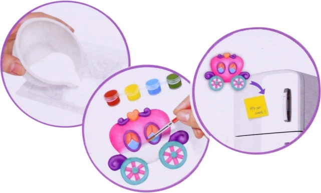 Descoperiți bucuria creației cu setul DIY pentru confecționarea magneților din gips cu motive de prințese. Copiii își pregătesc singuri amestecul de gips, îl toarnă în forme, iar după întărire îl colorează cu vopselele incluse. Magneții finali vor deveni o frumoasă decorațiune sau un cadou original.