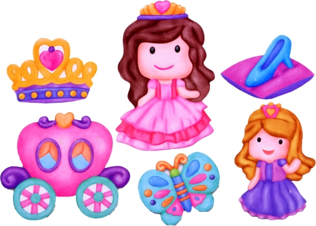 - regină, prințesă, caleașcă, coroană, fluture și pantofior