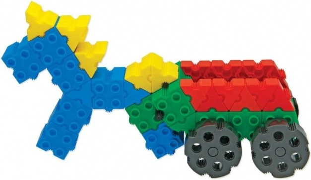 Cu roțile și elementele speciale vei crea ușor mașini, excavatoare sau vehicule de curse. Copiii se vor bucura de joaca cu modele funcționale, care se deplasează.