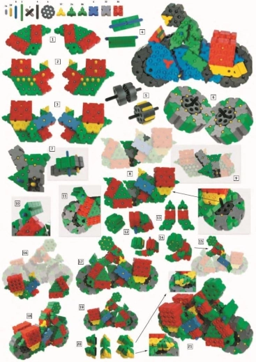 .Set de cuburi creat special pentru pasionații de motociclete. Conform instrucțiunilor incluse în set, avem posibilitatea de a asambla până la 50 de modele diferite de motociclete, la care putem adăuga liber propriile piese. Setul conține 360 de elemente care pot fi combinate în diverse structuri. Setul de cuburi include și mici elemente negre, care vor fi excelente ca accesorii pentru motociclete, de exemplu ghidon sau axe de roți. Datorită acestor piese foarte mici și nivelului de complexitate al construcțiilor, aceste cuburi sunt potrivite pentru copii peste 5 ani.