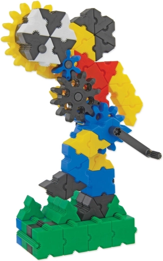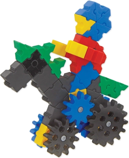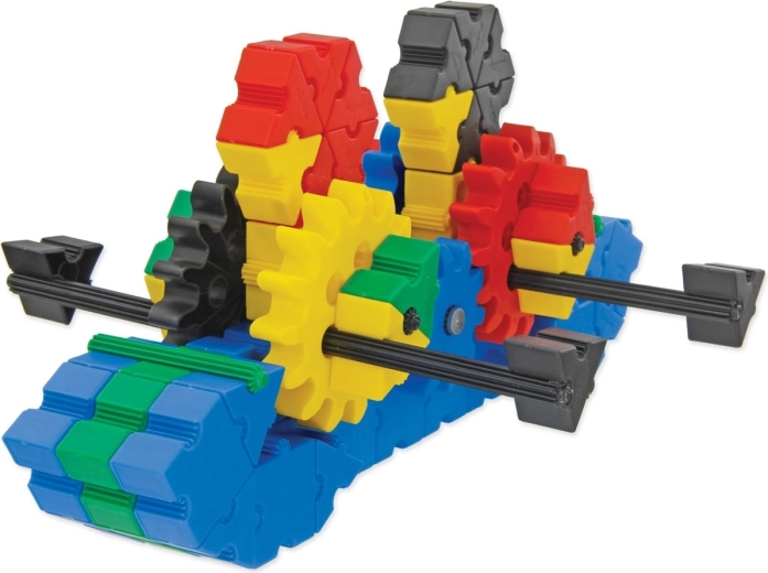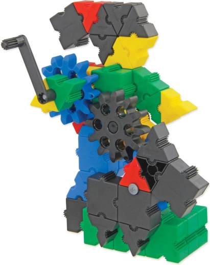 Datorită celor cinci dimensiuni de roți și manivelor, copiii pun ușor în mișcare creațiile lor și înțeleg principiile transmisiilor și ale transferului de forță.