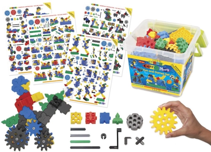 Setul este conceput pentru utilizare sigură și repetată: piesele din plastic durabil se curăță ușor și se fixează bine la îmbinare. Cutia cu mâner este practică pentru depozitare și transport. GearPhun este un instrument excelent pentru educația STEAM – îmbină jocul, tehnica și creativitatea.