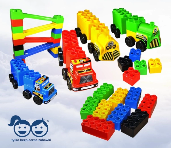 Construcția Vehicule Gigant și Tobogan oferă copiilor posibilitatea de a-și construi propriile vehicule și tobogane din 103 piese colorate. Această construcție nu doar stimulează creativitatea și gândirea logică, dar îmbunătățește și abilitățile motrice și imaginația micilor constructori.