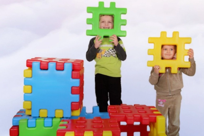 - Piese mari și colorate – ușor de prins și de îmbinat, ideale pentru mâini mici.