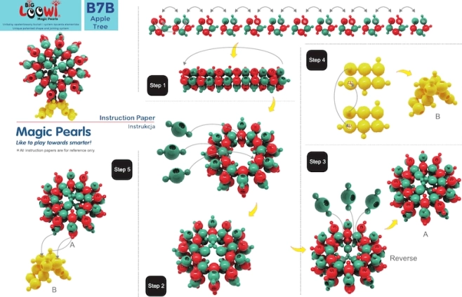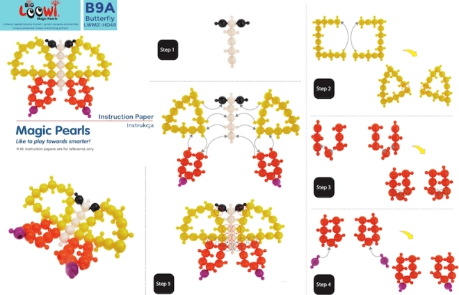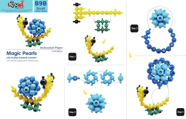 Sunt incluse 10 ghiduri color în format A4. Copiii pot construi peștișor, crab, broască țestoasă, floare și alte modele, dezvoltând în același timp imaginația.