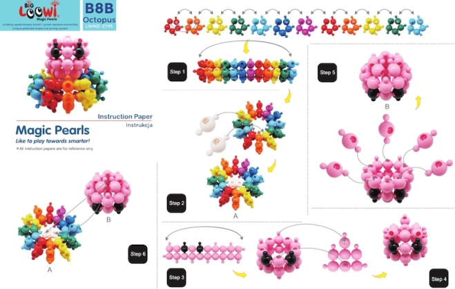 BIG LOOWI EDU aduce copiilor o nouă dimensiune a distracției și a învățării. Piesele sferice extra-mari și netede se țin ușor în mână, se conectează în siguranță și permit construirea unor modele mai mari și mai stabile. Datorită culorilor intense, conectării intuitive și îmbinărilor ferme, copiii exersează motricitatea fină, coordonarea mână–ochi și imaginația spațială.
