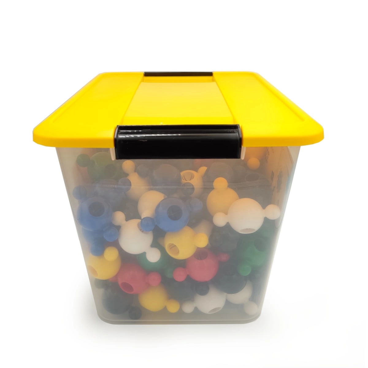 Cutia transparentă cu clapetă solidă păstrează toate piesele laolaltă. Depozitare ușoară, transport facil și ordine după fiecare joacă.