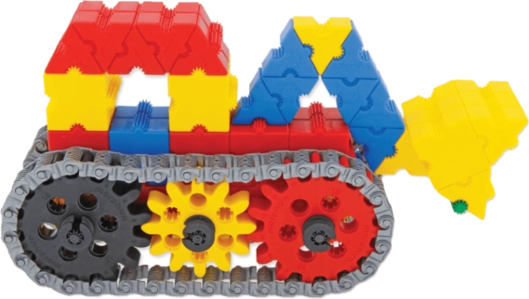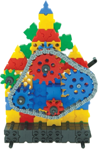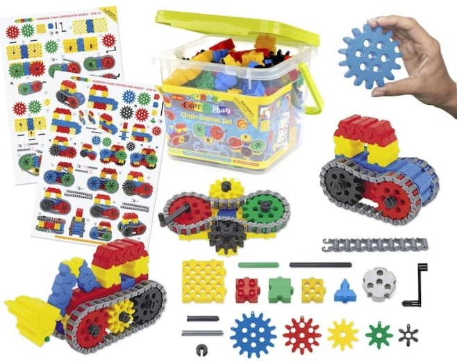 Prin îmbinarea distracției cu învățarea, copiii asimilează principiile angrenajelor, transmiterii mișcării și reprezentării spațiale. Jocul cu piesele dezvoltă motricitatea fină, coordonarea mână–ochi, gândirea logică și răbdarea. Cutia robustă și transparentă cu mâner ajută la menținerea ordinii și la a avea toate piesele mereu la îndemână.