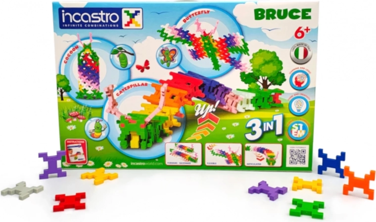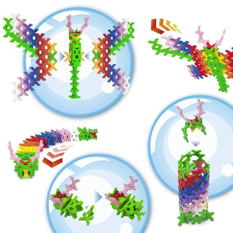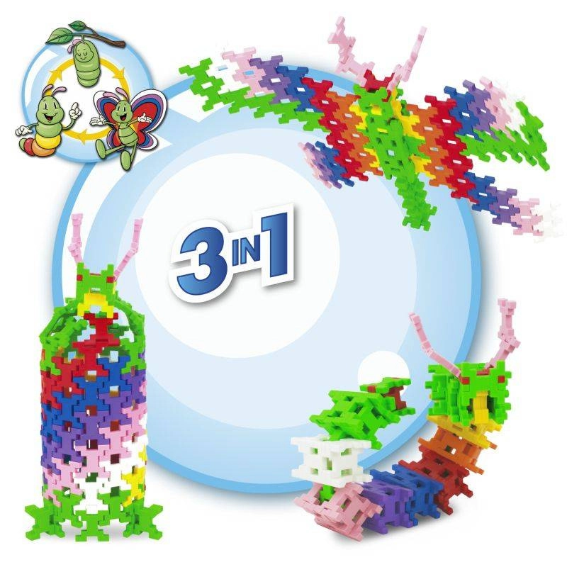 Acest set inteligent, cu 103 piese colorate, aduce într-o formă ludică cunoașterea fenomenelor naturale – copiii asamblează singuri întregul „nașterea fluturelui”, de la omidă și cocon până la fluturele delicat. Datorită profilului unic al pieselor, se pot construi structuri plane și spațiale, care își păstrează forma și încurajează experimentarea.