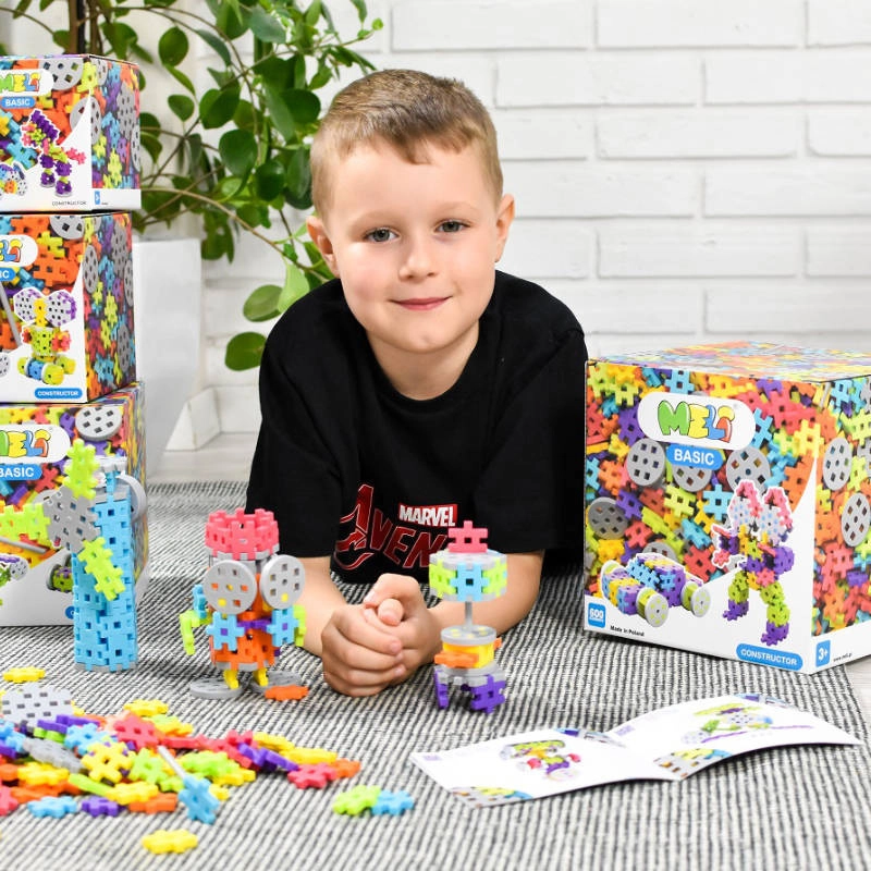 Descoperă setul universal de construcție MELI Constructor cu 600 de elemente, care le permite copiilor să construiască o mașină, un elicopter, un robot, o floare sau personaje preferate din povești. Setul combină piesele clasice MELI cu componente funcționale (axe, roți, hexagoane), astfel încât iau naștere ușor modele 3D stabile și vehicule mobile.