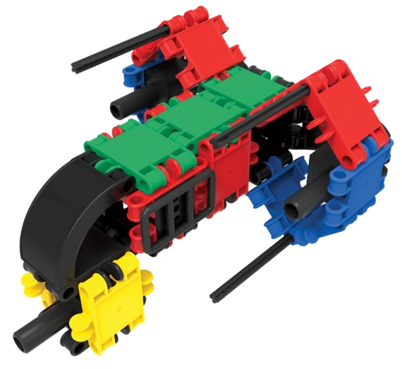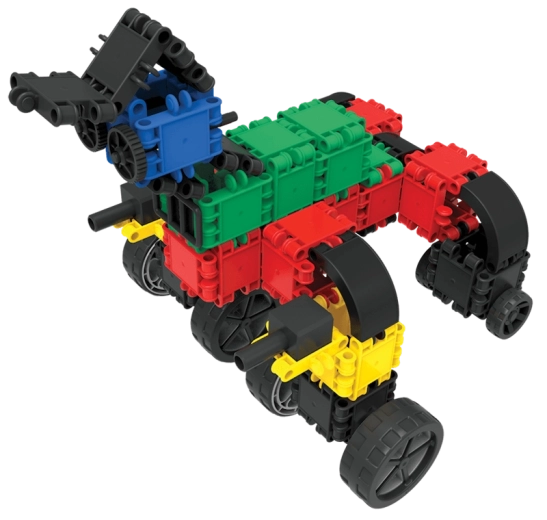 Construiți vehicule, animale și mașinării fantastice. Gama largă de forme și culori susține jocul creativ și varietatea construcțiilor.