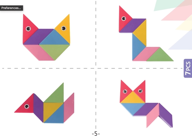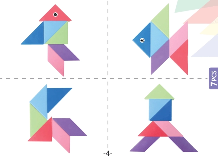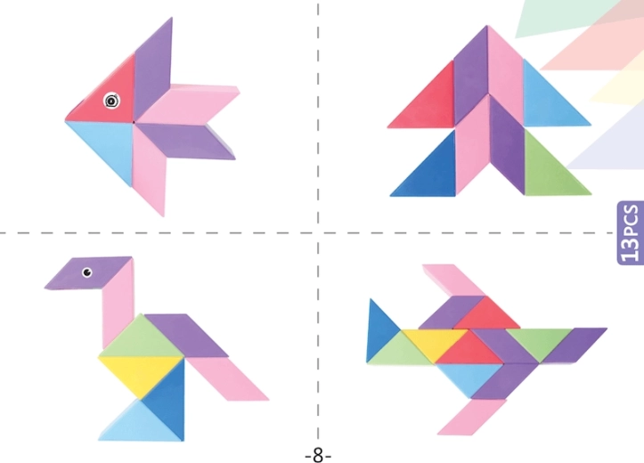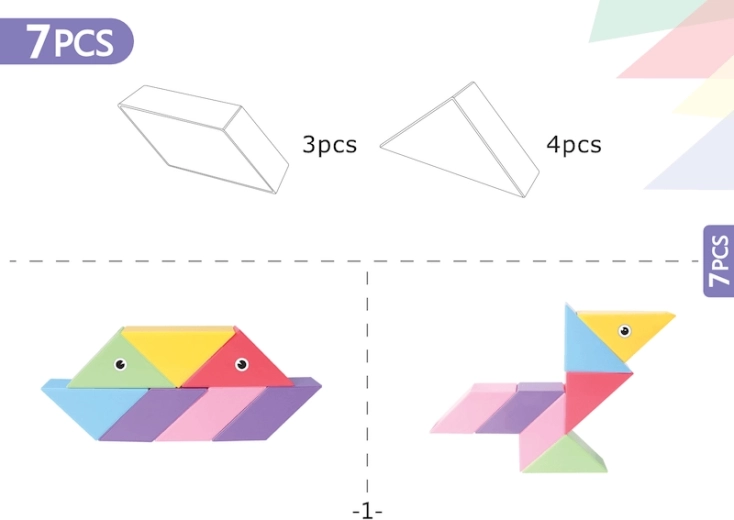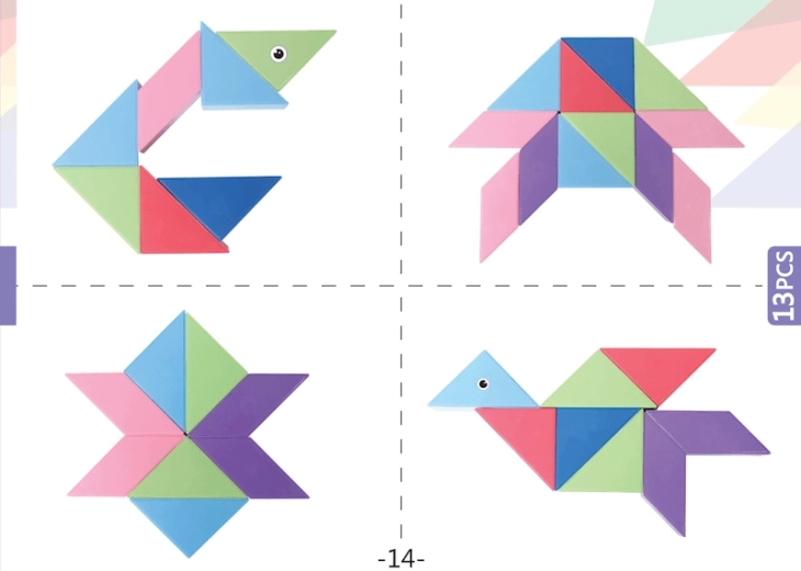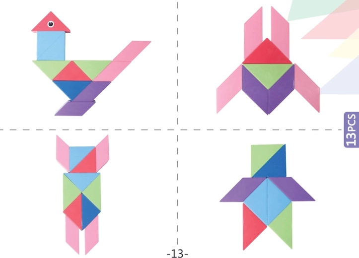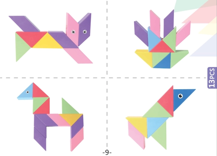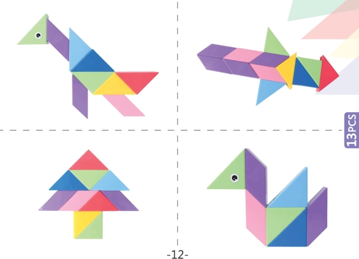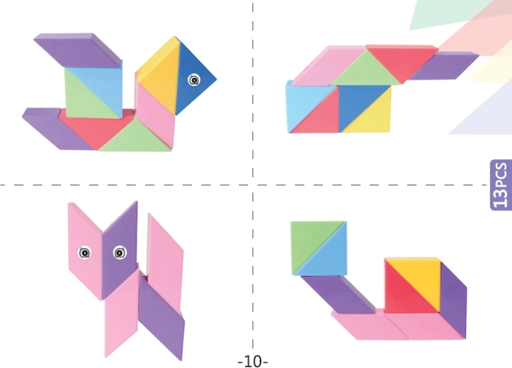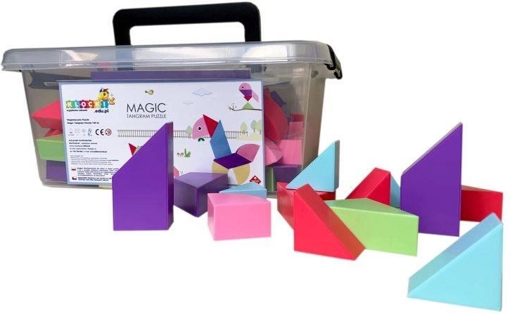 Setul de construcție magnetică Tangram combină puzzle-ul chinezesc tradițional cu elemente moderne. Datorită magneților utilizați, construcția este mai ușoară, modelele sunt mai solide și permit realizarea de structuri spațiale. Cu acest set puteți nu doar crea forme impresionante, ci și desfășura jocuri matematice precum sortarea formelor și culorilor sau învățarea adunării și scăderii. În pachet veți găsi, de asemenea, autocolante cu ochi și gură, care oferă modelelor voastre personalitate.