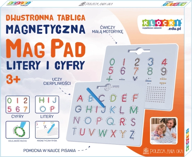 Designul față-verso al tablei MagPad oferă o învățare complexă. O parte este dedicată literelor, iar cealaltă cifrelor, permițând un antrenament versatil al scrisului și recunoașterii simbolurilor. Bilele magnetice creează formele și modelele dorite, care pot fi șterse ușor.
