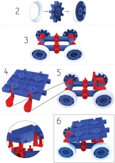 Instrucțiunile clare inspiră crearea de mașinuțe și alte proiecte funcționale. Copiii își dezvoltă coordonarea mână-ochi și răbdarea lucrând după pași.