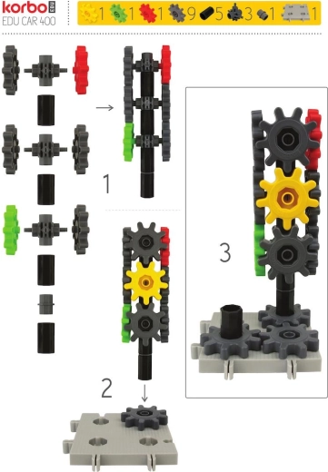 Sistemul unic KORBO permite conectarea roților dințate și dă viață construcțiilor tale. Copiii dobândesc prin joc principiile rapoartelor de transmisie, ale sensului de rotație și ale transmiterii forței.