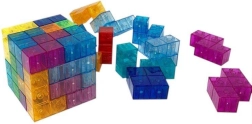 Setul variat de cuburi magnetice transparente stimulează imaginația și permite asamblarea de modele simple sau mai complexe, după instrucțiuni sau idei proprii.