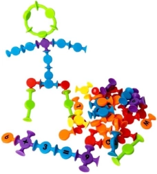Piesele se îmbină datorită ventuzelor și aderă pe sticlă, faianță sau masă. Ideal pentru construcții creative fără limite.