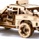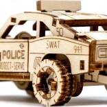 Asamblarea este fără lipici, iar piesele se îmbină precis. Rezultatul este o miniatură rezistentă a unei mașini de poliție, care arată grozav pe raft sau pe birou. Marca WOODEN CITY acordă atenție ecologiei – produsul este ambalat fără plastic.