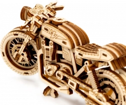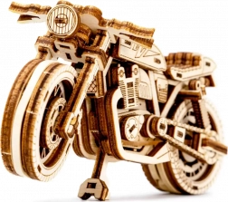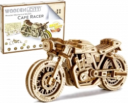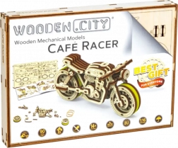 Motocicleta Café Racer de la WOODEN CITY este un model din lemn detaliat, la scara 1:16, care va învia biroul sau vitrina ta. Datorită motorului cu bandă elastică și mecanismului de recul, modelul se deplasează înainte și înapoi, parcurge aproximativ 1 metru și îți dezvăluie mecanica reală a angrenajelor.